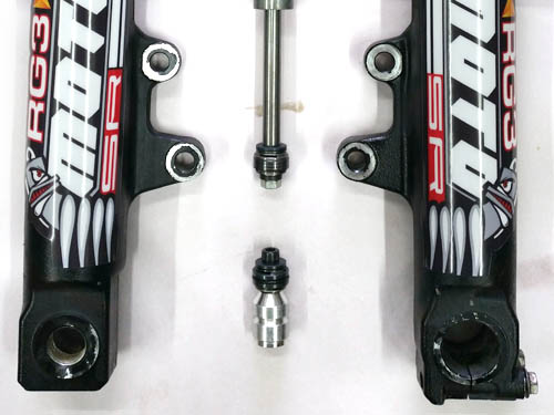The front fork is completely disassembled, cleaned and inspected. Worn parts are replaced, then modifications to the damping system are done based on your weight, ability, riding style and type of riding you do. The front fork is reassembled using genuine Original Equipment Manufacturer Parts and Torco Racing Oil.